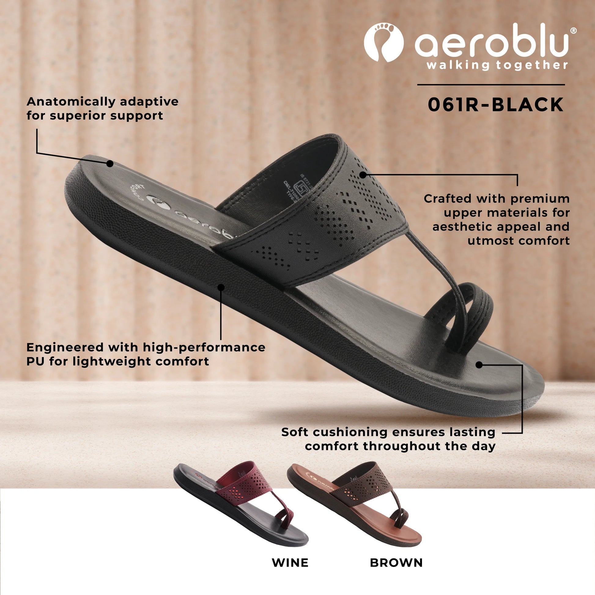 Step into traditional elegance with the Aeroblu 061R Ethnic Wear Toe Ring Flat Slippers for Women. Designed with a classic toe ring style, flat heel, and open toe, these slip-on slippers combine comfort with timeless ethnic charm.