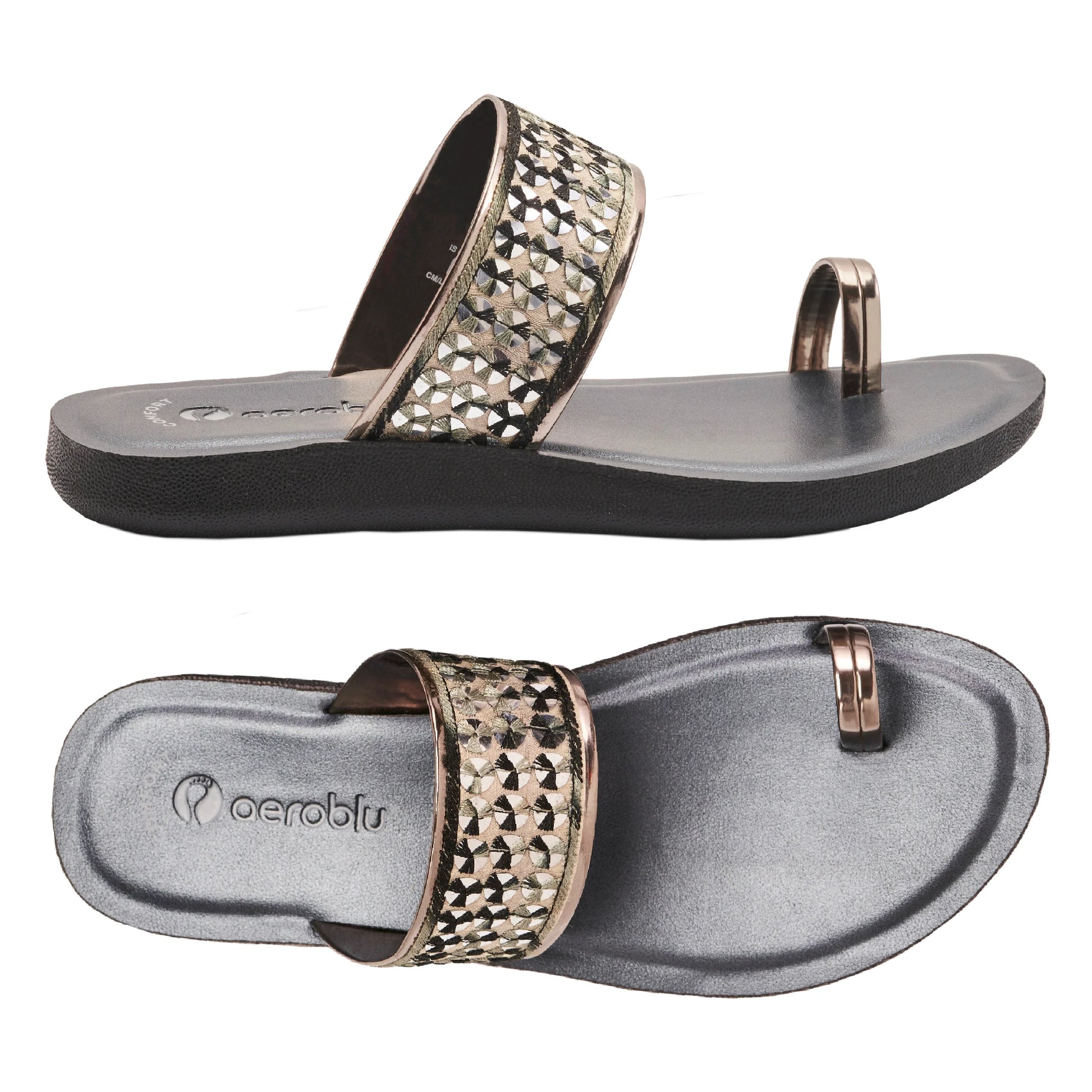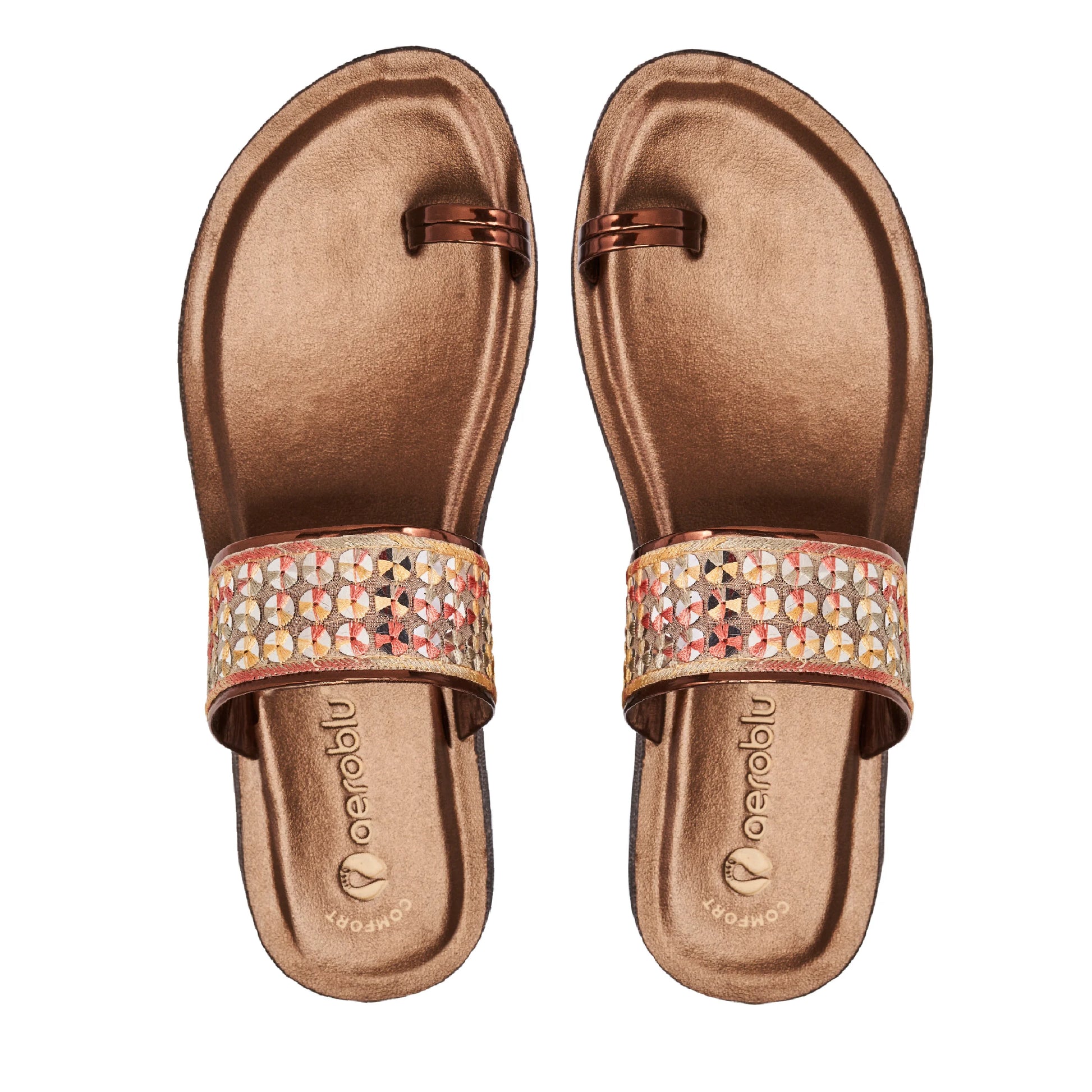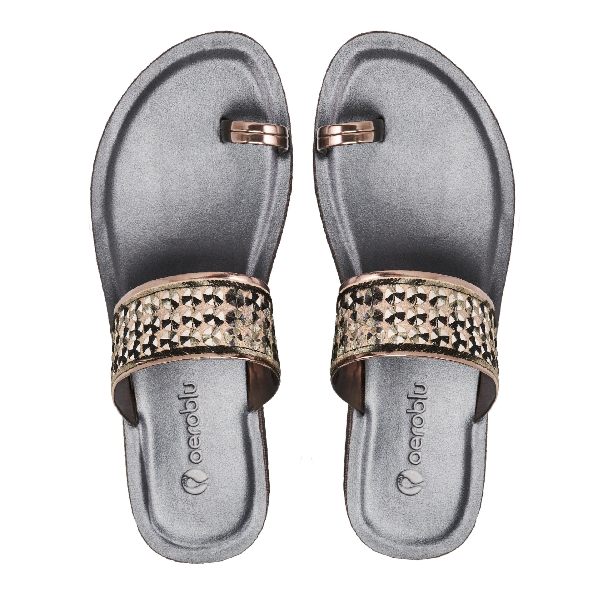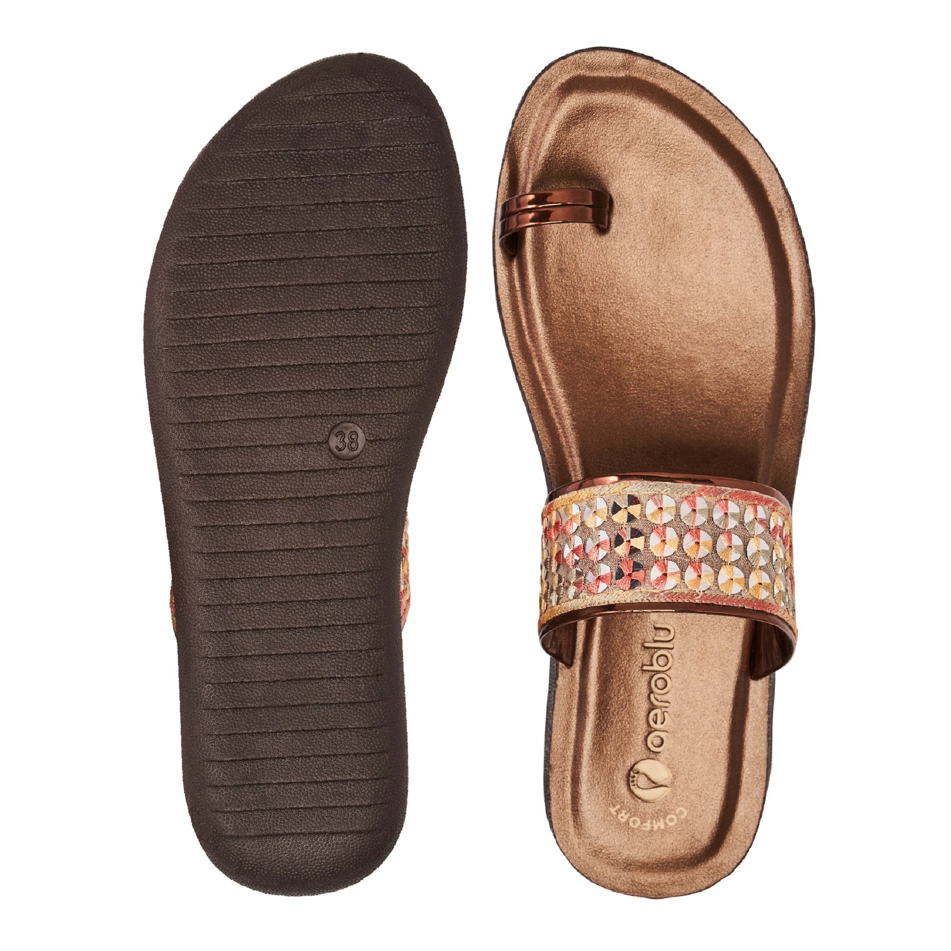 Step into effortless style with Aeroblu's abstract print toe ring slippers — designed for Party wear with a flat heel and slip-on closure. Ideal for festive moments, traditional outfits, or everyday ease.