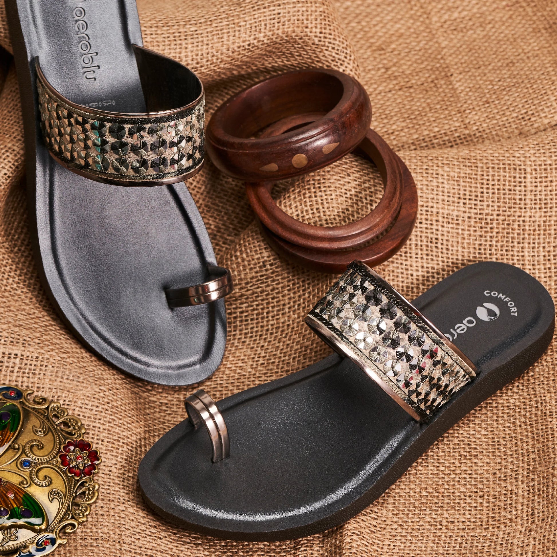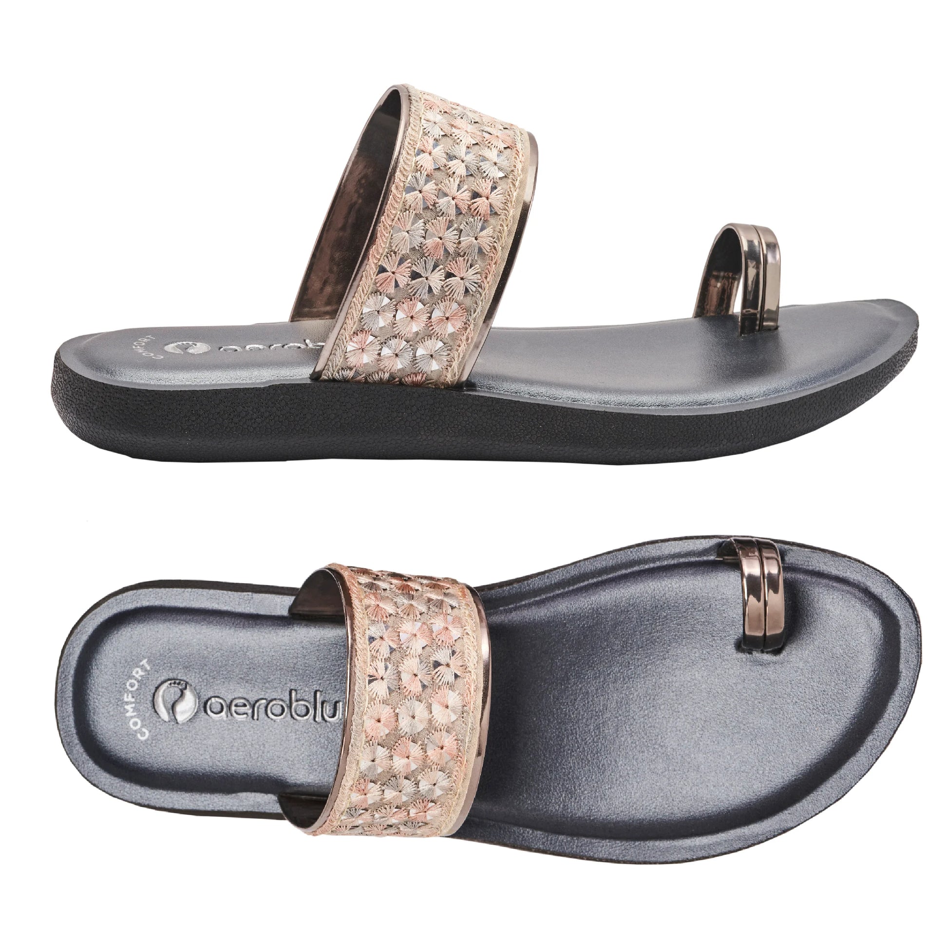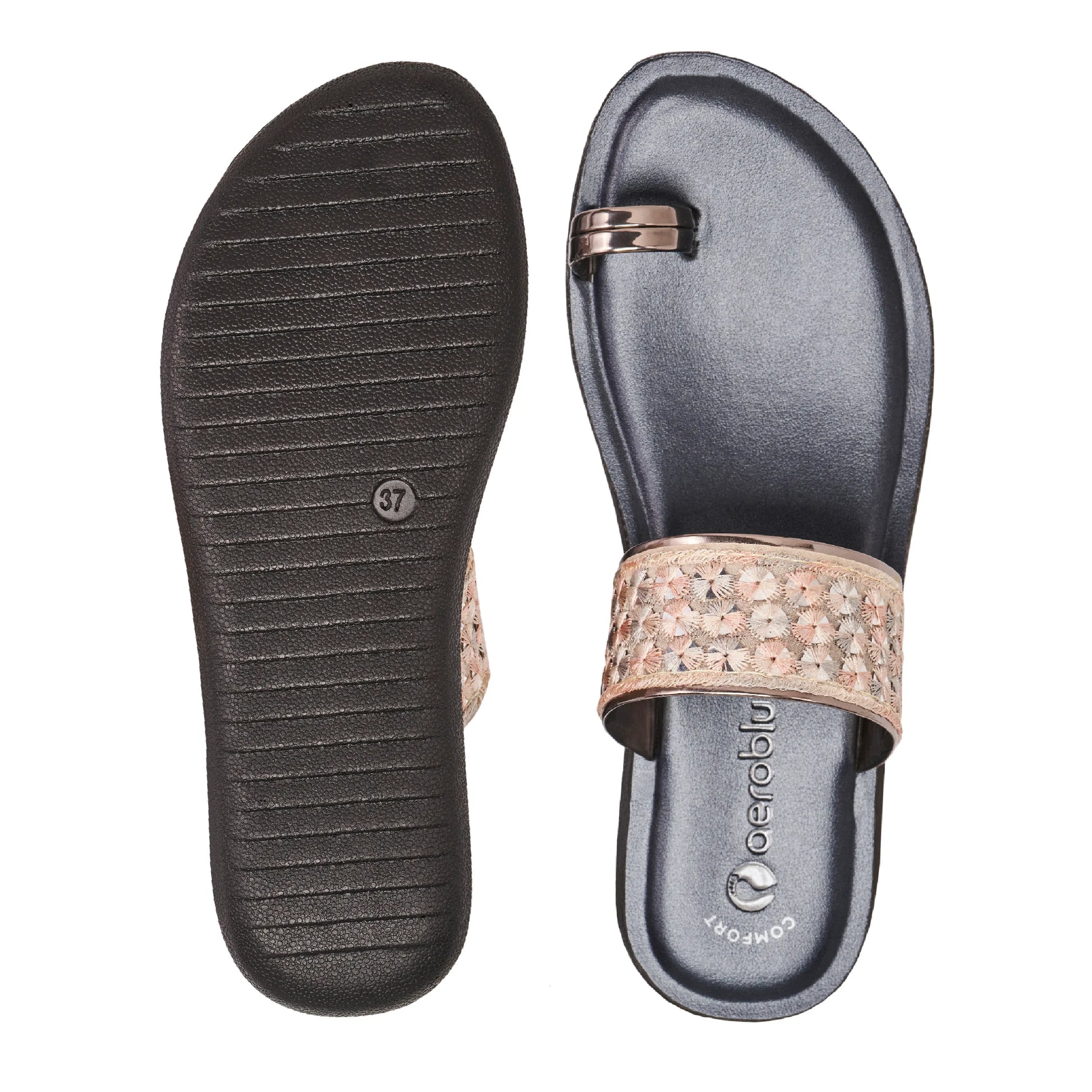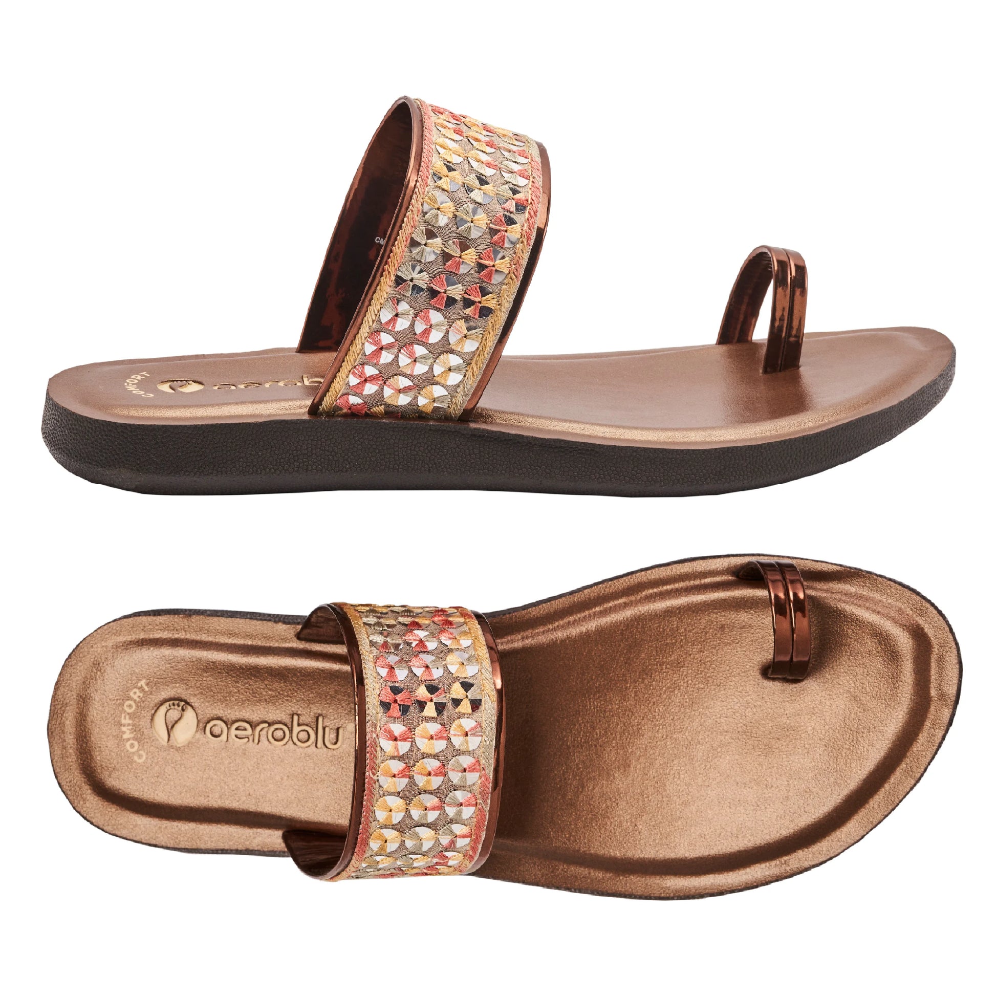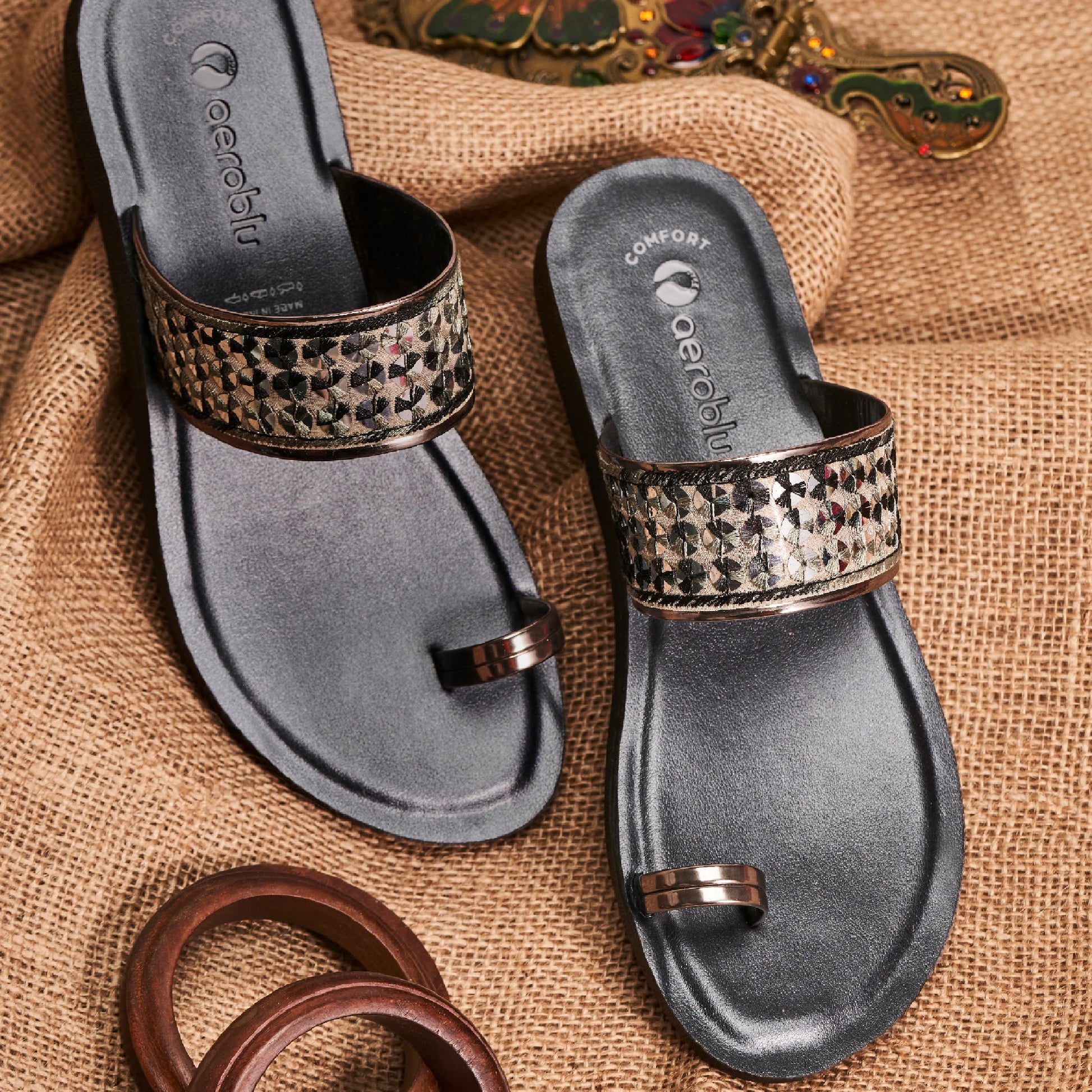 Step into effortless style with Aeroblu's abstract print toe ring slippers — designed for Party wear with a flat heel and slip-on closure. Ideal for festive moments, traditional outfits, or everyday ease.