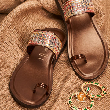 Party Wear Toe Ring Flat Slippers for Women | 061V