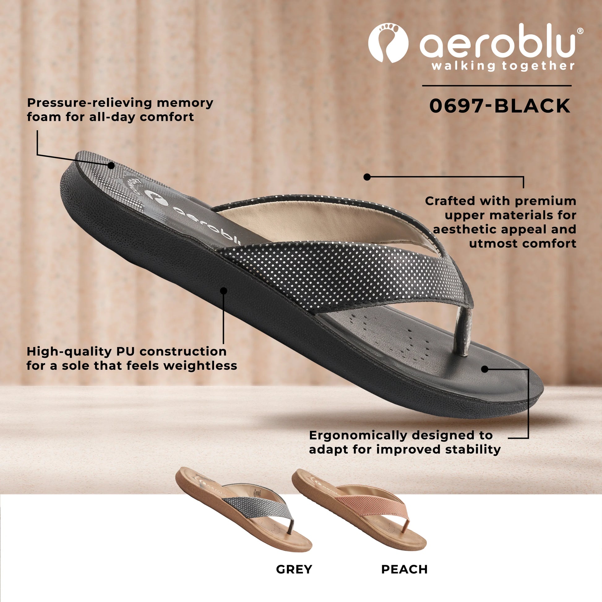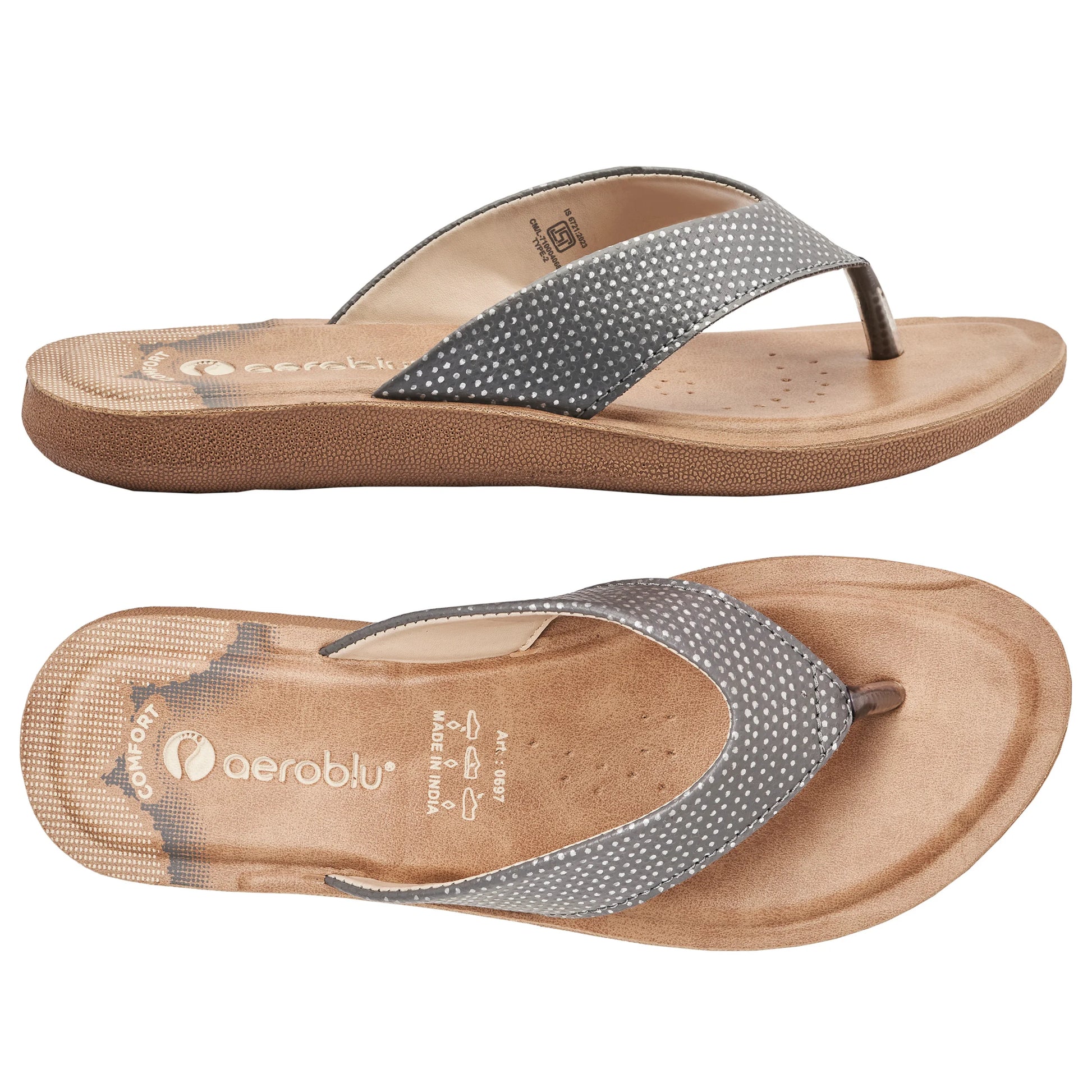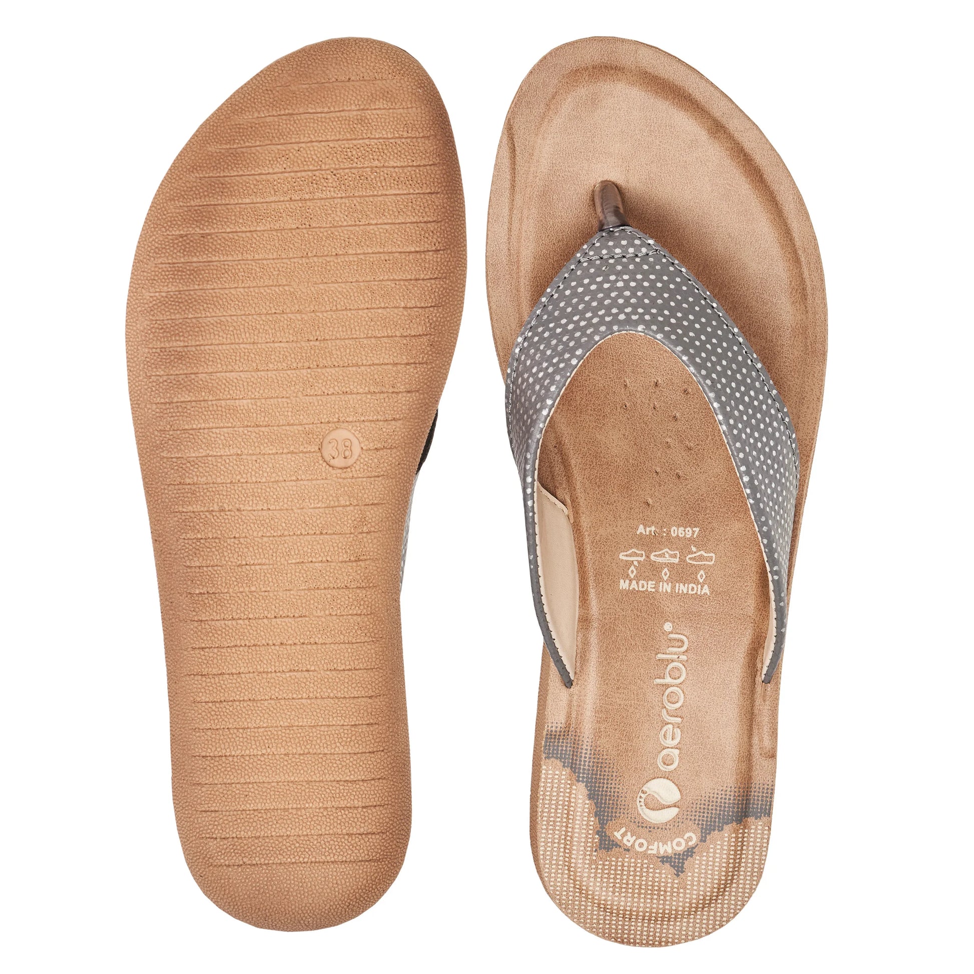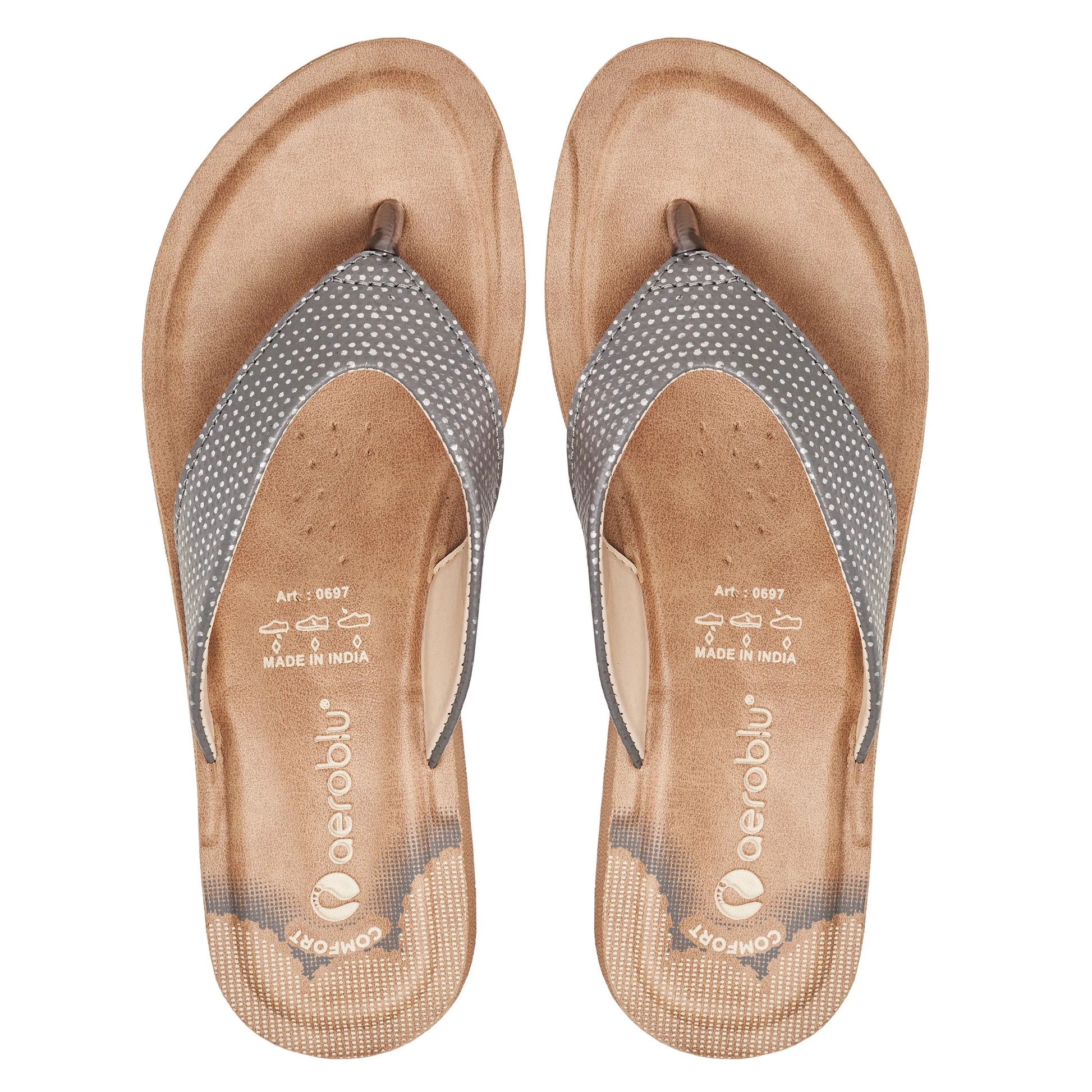 Enjoy all-day comfort with the Aeroblu 0697 Casual Wear Thong Slippers for Women. Designed with a flat heel, slip-on closure, and open toe style, these slippers are ideal for casual outings, relaxed weekends, or at-home comfort.
