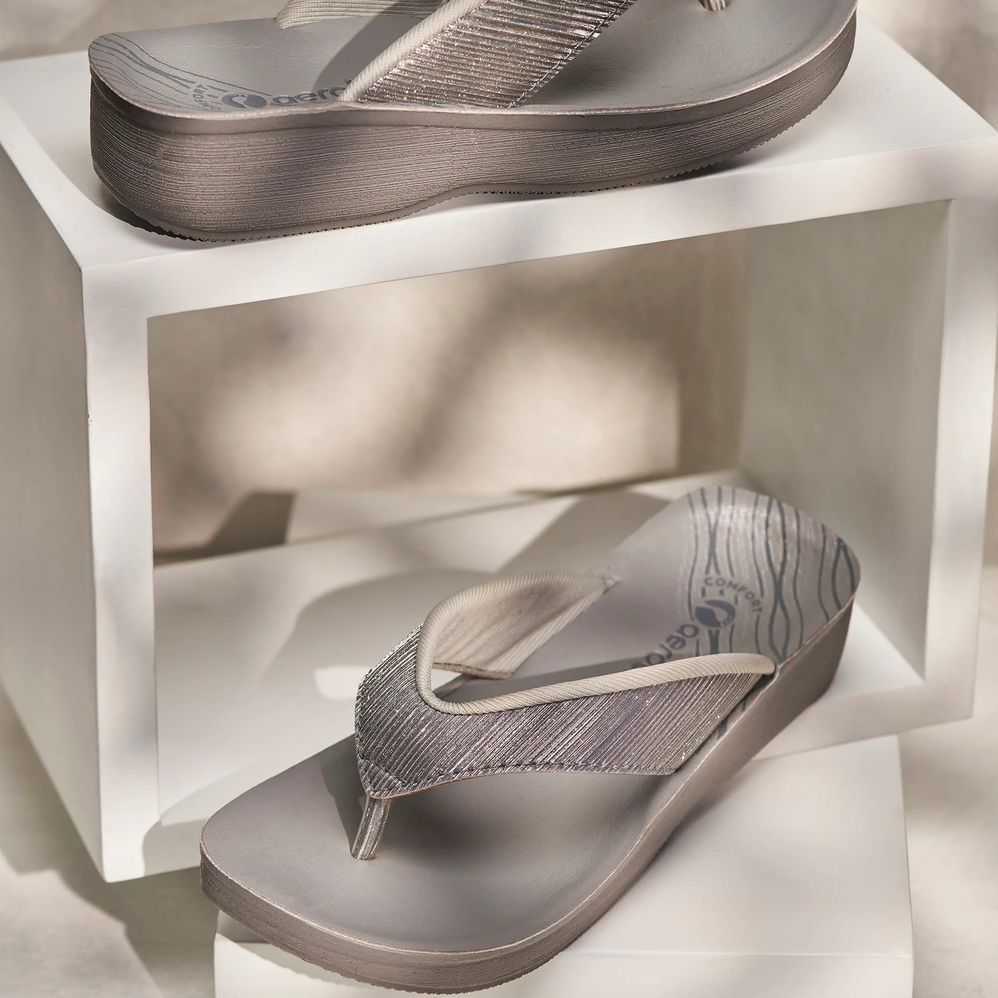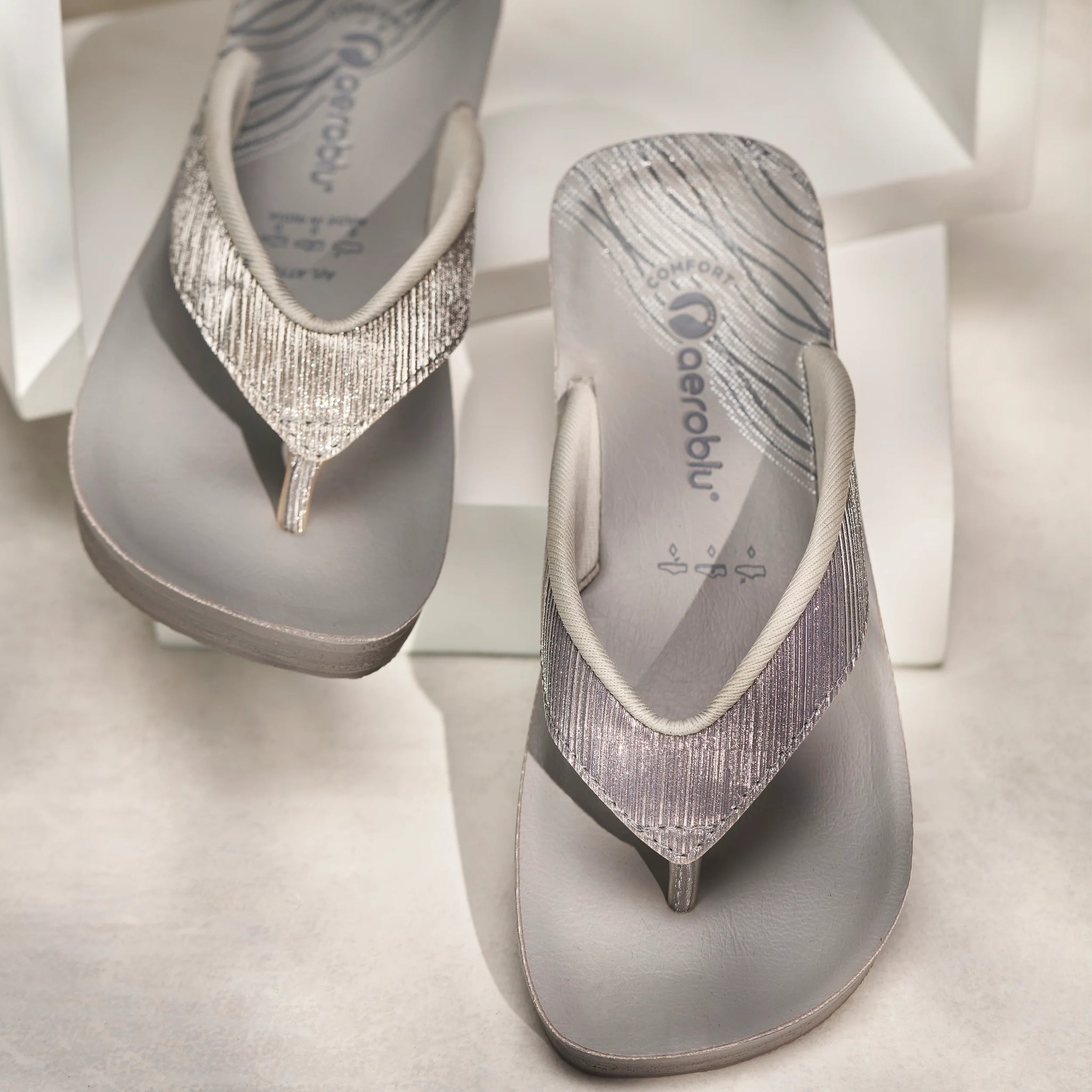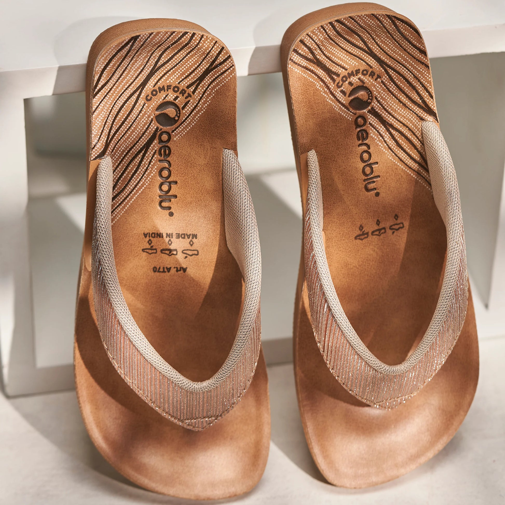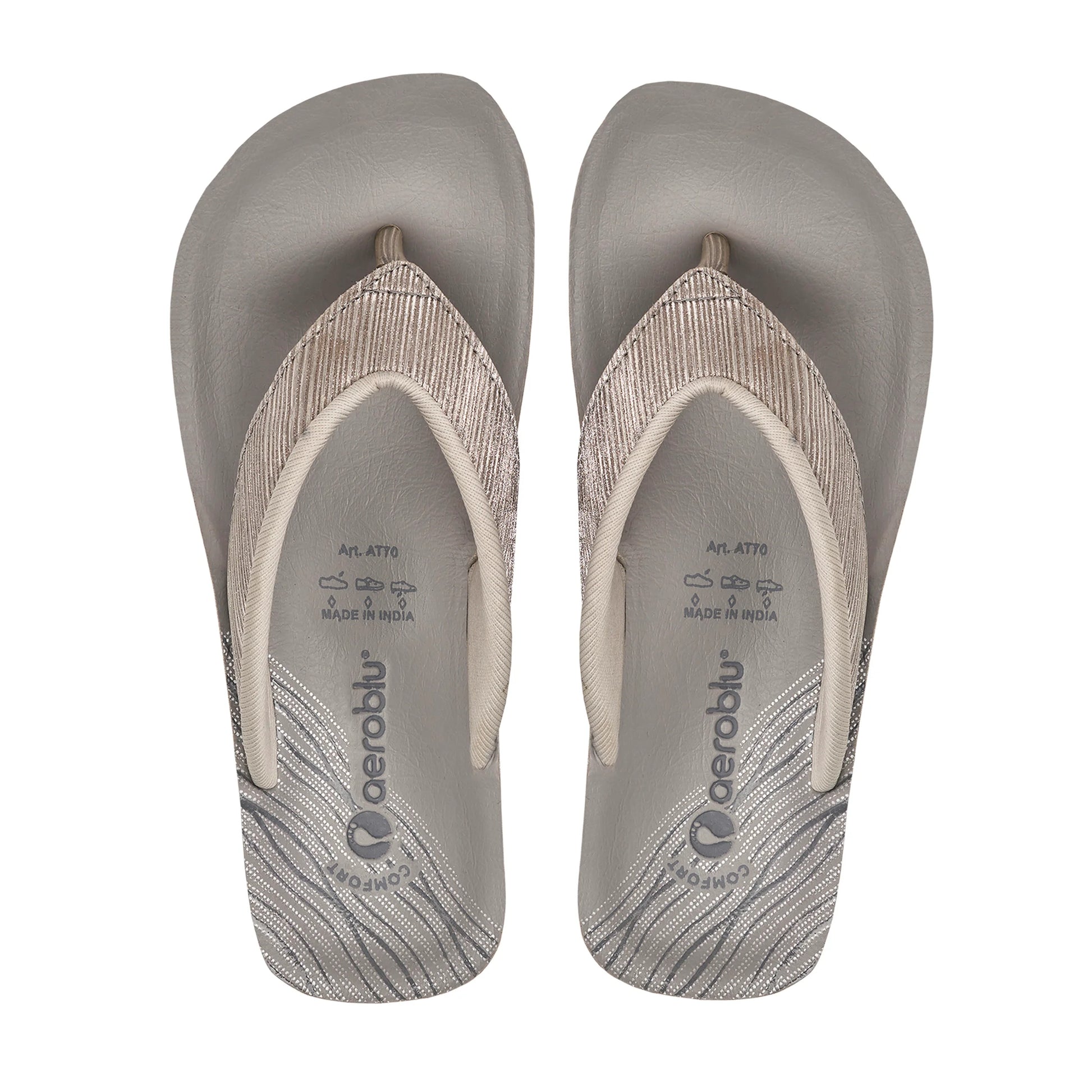 Add effortless elegance to your festive look with the Aeroblue AT70 Party Wear Thong Slippers for Women. Featuring a flat heel, easy slip-on closure, and open toe design, these slippers offer a balance of comfort and festive charm.