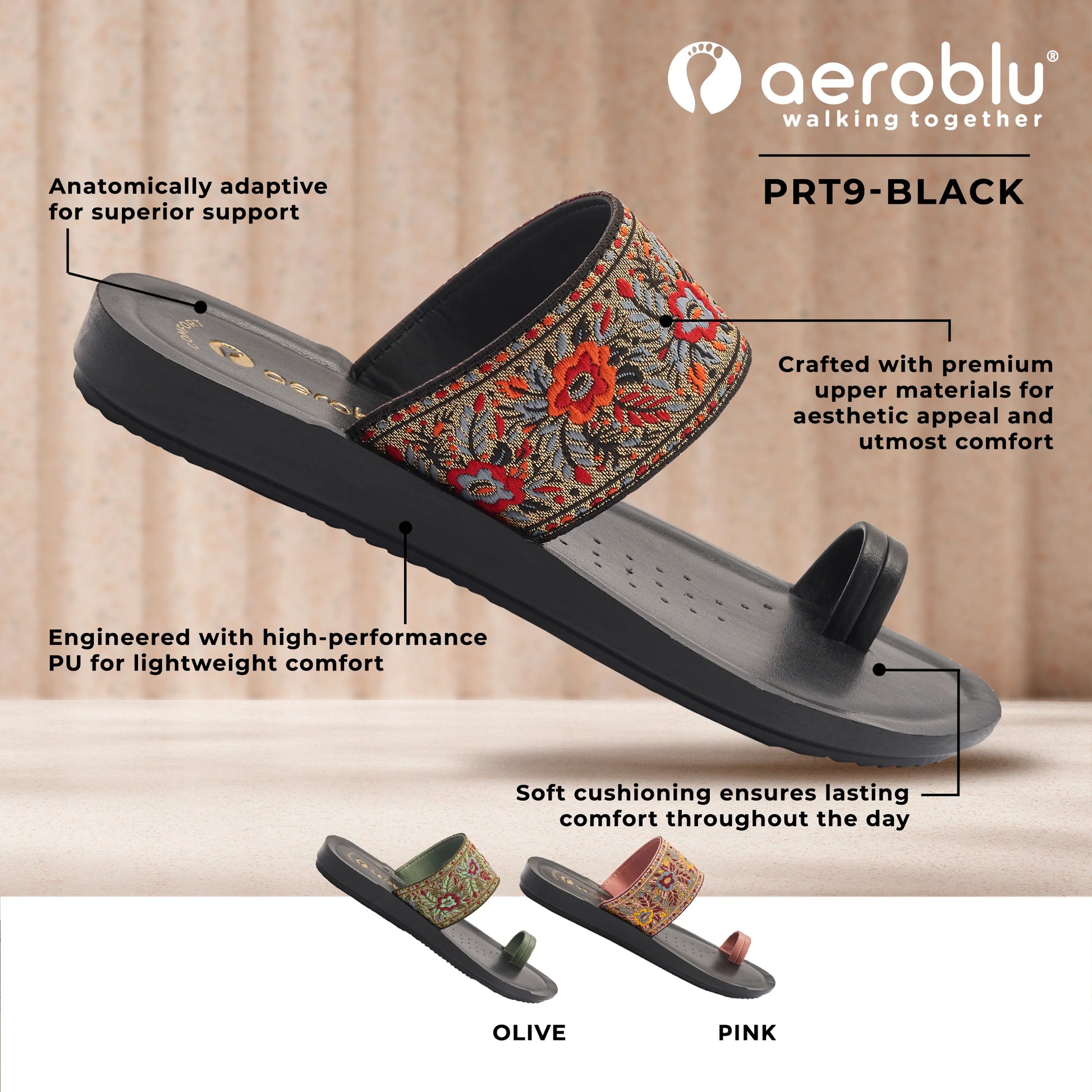 Step into effortless style with Aeroblu's printed toe ring slippers — designed for Party wear with a flat heel and slip-on closure. Ideal for festive moments, traditional outfits, or everyday ease.