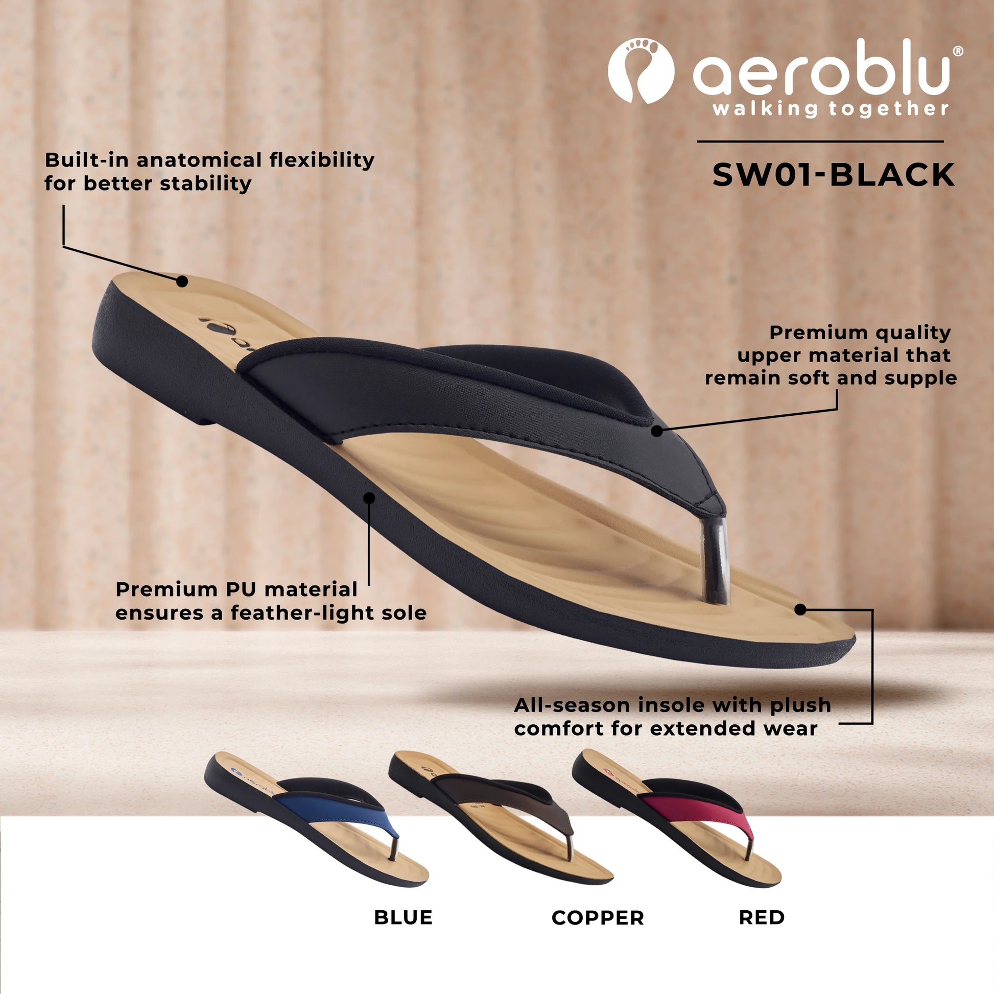 Experience easygoing style with the Aeroblu SW01 Casual Wear Thong Slippers for Women. Designed for everyday comfort, these slippers feature a flat heel, slip-on closure, and open toe design to keep your feet relaxed all day long.